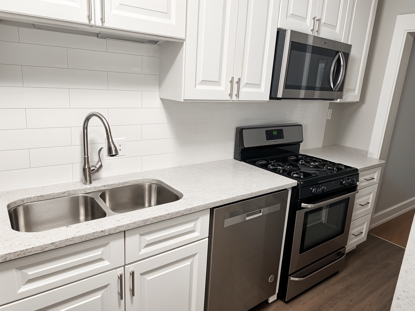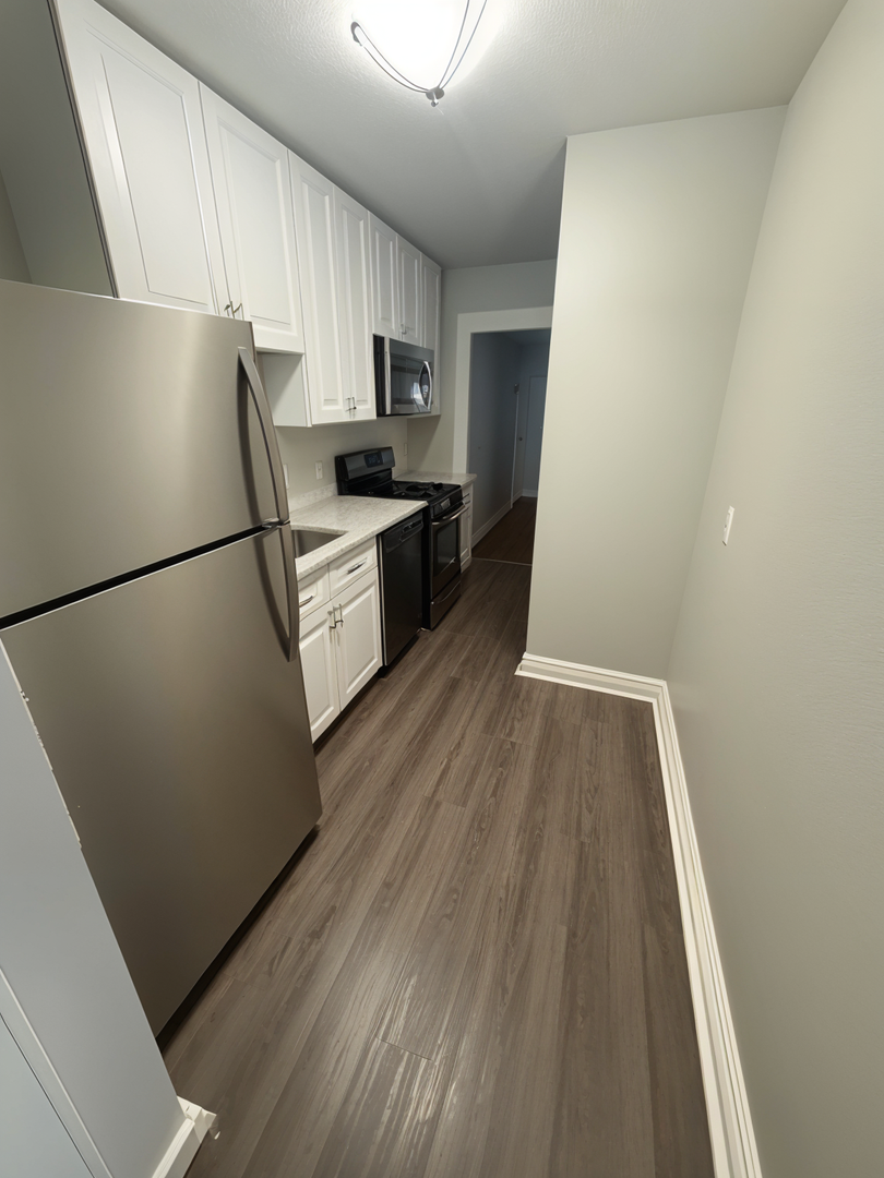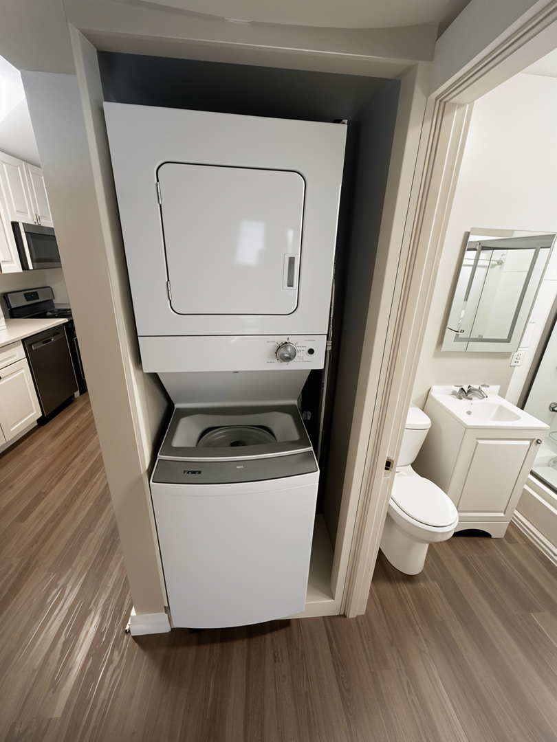 Each apartment has an in-unit washer and dryer, newly installed soft-close cabinetry in the kitchens, and stainless steel appliances. The apartment also features original hardwood floors and accents, plenty of natural light, and central heat/AC. Off-street parking is available for added convenience.