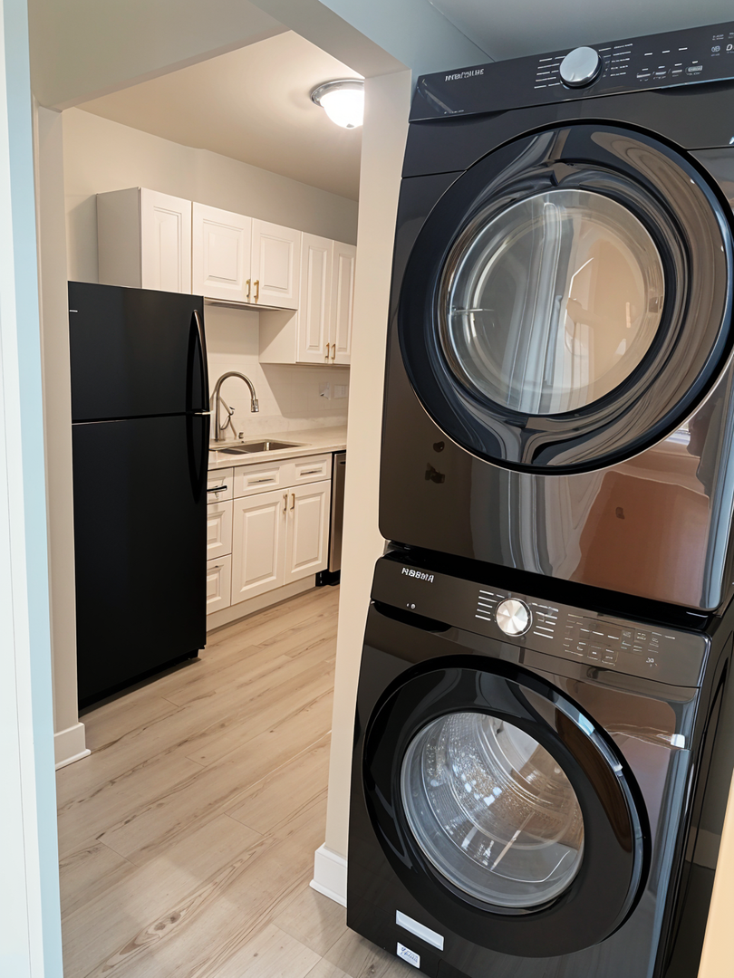 Each apartment has an in-unit washer and dryer, newly installed soft-close cabinetry in the kitchens, and stainless steel appliances. The apartment also features original hardwood floors and accents, plenty of natural light, and central heat/AC. Off-street parking is available for added convenience.